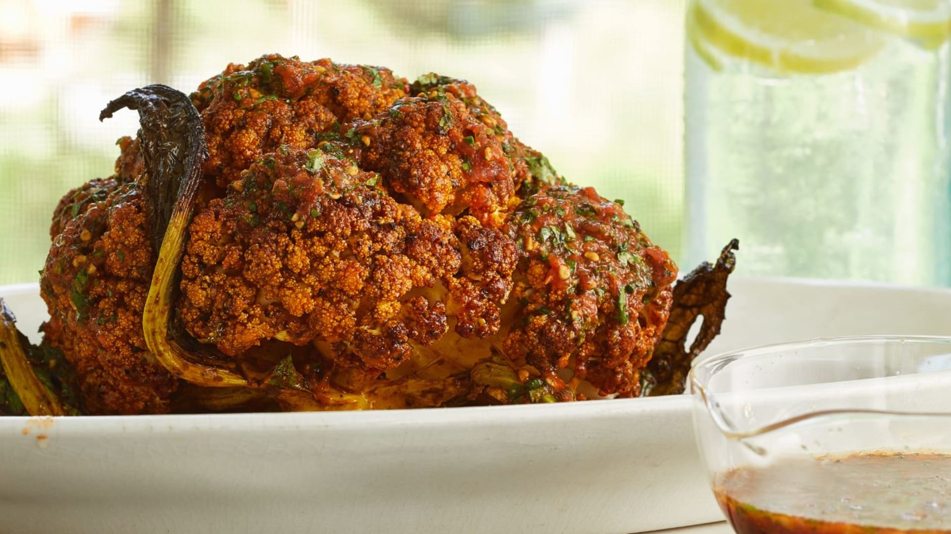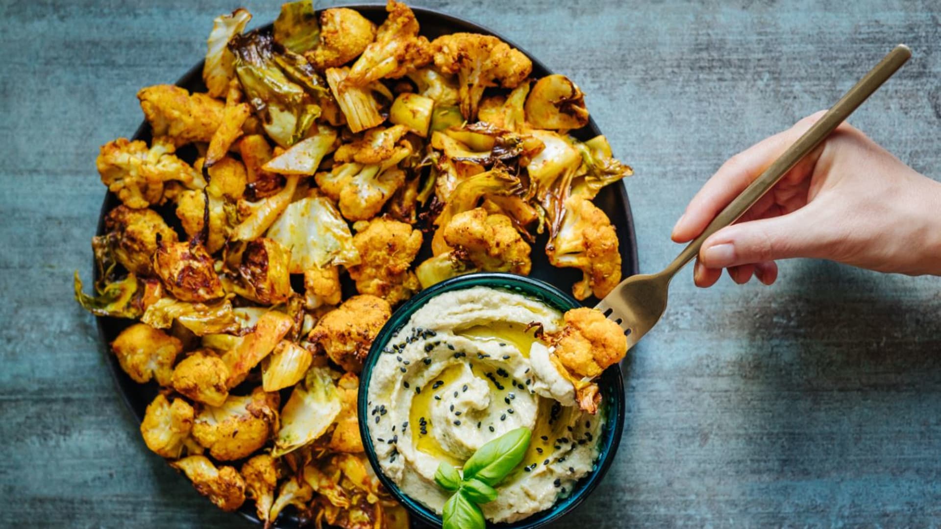 Celý pečený květák či brokolice s fazolovým hummusem