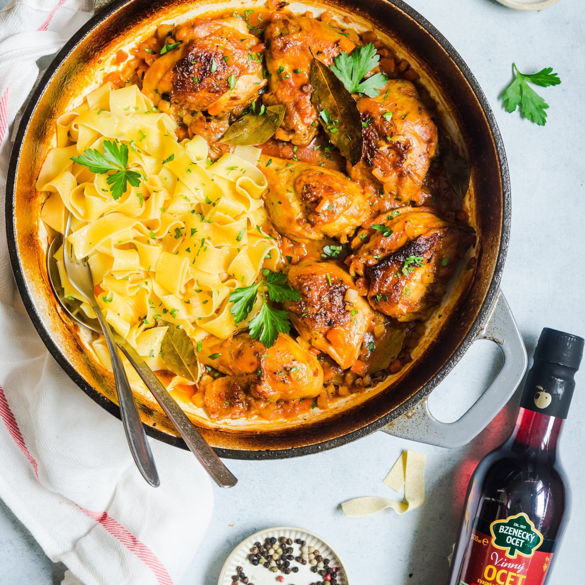 Kuře na miliontý způsob? Rozhodně! Protože každá další chuťová kombinace v rukávu se hodí. Tentokrát je kuřecí maso pečené na kořenové zelenině a podlité octem. Díky němu zůstane kuřecí maso obzvlášť šťavnaté a měkké, kyselost během pečení lehce zmizí, ale jídlo zůstane stále příjemně pikantní. Suroviny kuřecí stehno (horní a spodní zvlášť) 1 kg máslo … Lire plus