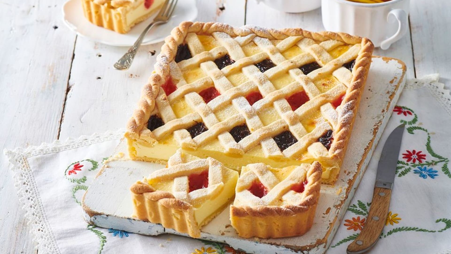 Mřížkový linecký koláč s tvarohovou, povidlovou a jahodovou náplní – efektní kousek nejen pro Pierota