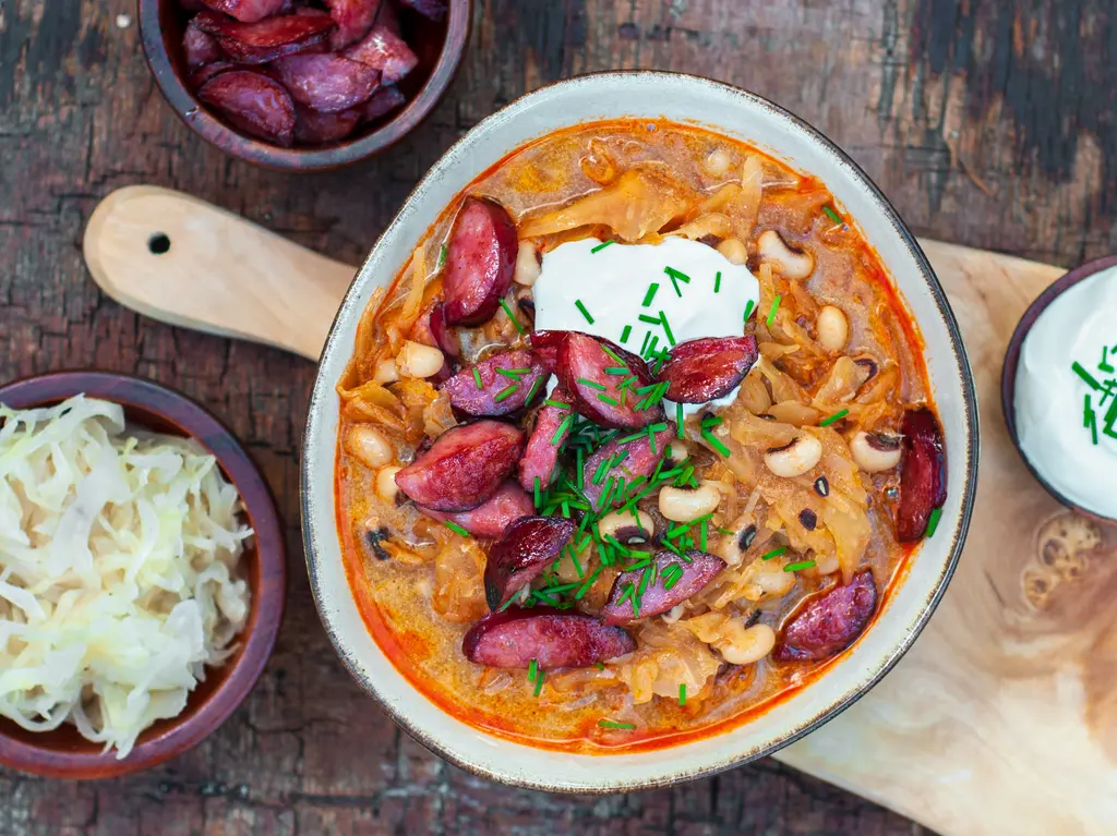 Levná & rychlá zelňačka s fazolí černé oko a klobásou