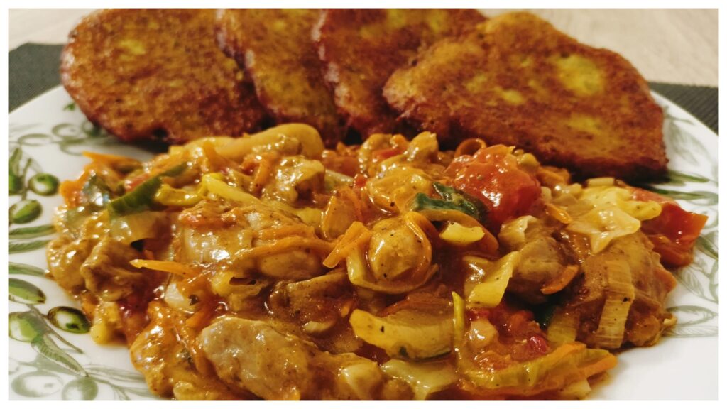 Gyros kotlety z kuřecích stehen se zeleninou a sýrem