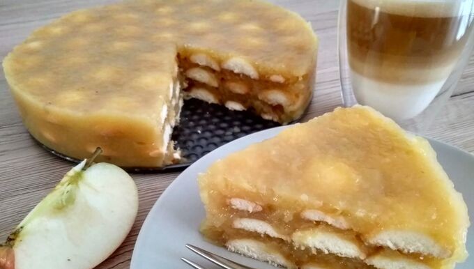 Osvěžijíci nepečený jablečný dortík s piškoty