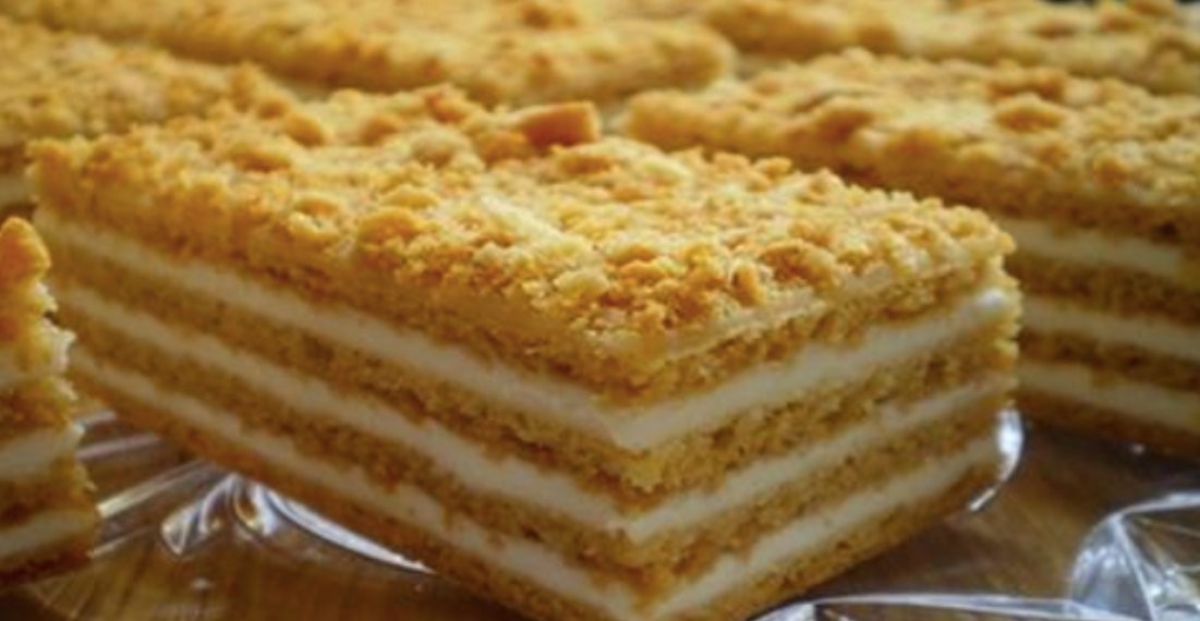 Ingredience 3 vejce 190 g másla 3 lžíce medu 2 hrnky cukru (dohromady) 2 lžičky jedlé sody Hladká mouka podle potřeby 1,5 l zakysané smetany Postup přípravy