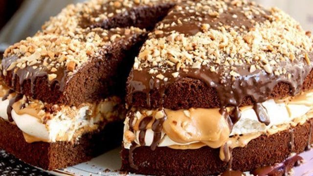 Co budeme potřebovat: 7 ks bílků 400 g cukru plechovku kondenzovaného mléka (obvykle 397 g) 150 g másla (pokoje teploty, aby se dobře spojilo s mlékem) 200 g pražených arašídů (bez slupky) jakýkoliv čokoládový piškotový korpus (může být domácí nebo zakoupený) čokoláda na polevu (mléčná či hořká dle preference) Jak budeme postupovat: