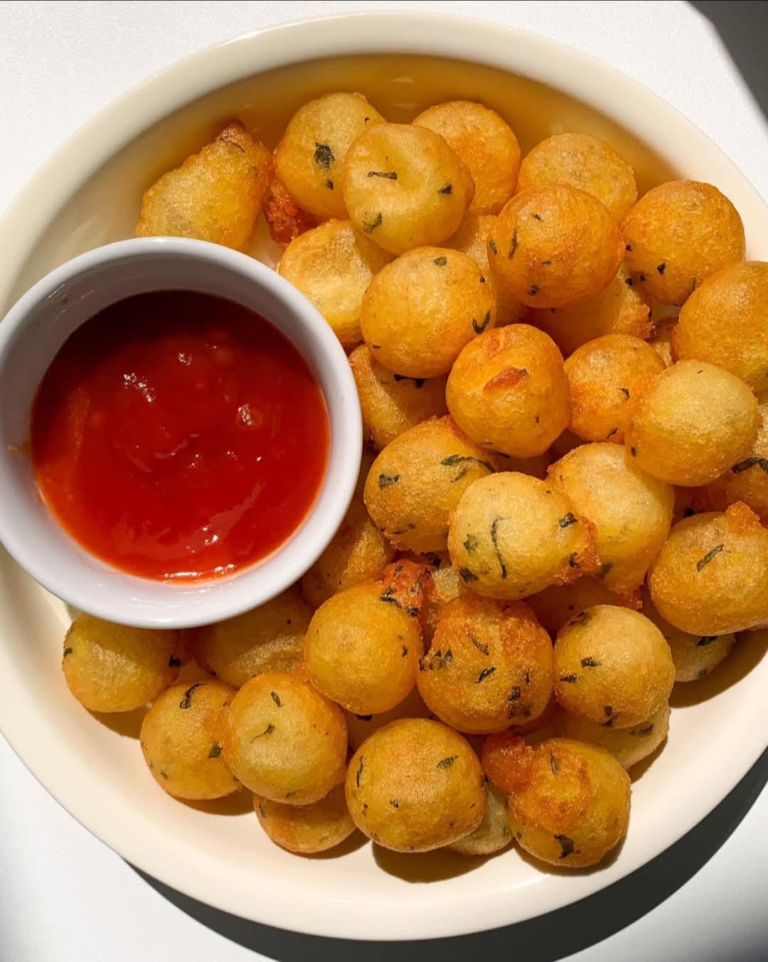 Ingredience: 2 vařené a rozmačkané brambory 1/2 šálku škrobu 1/2 čajové lžičky soli 1/2 čajové lžičky černého pepře Olej na smažení Postup: