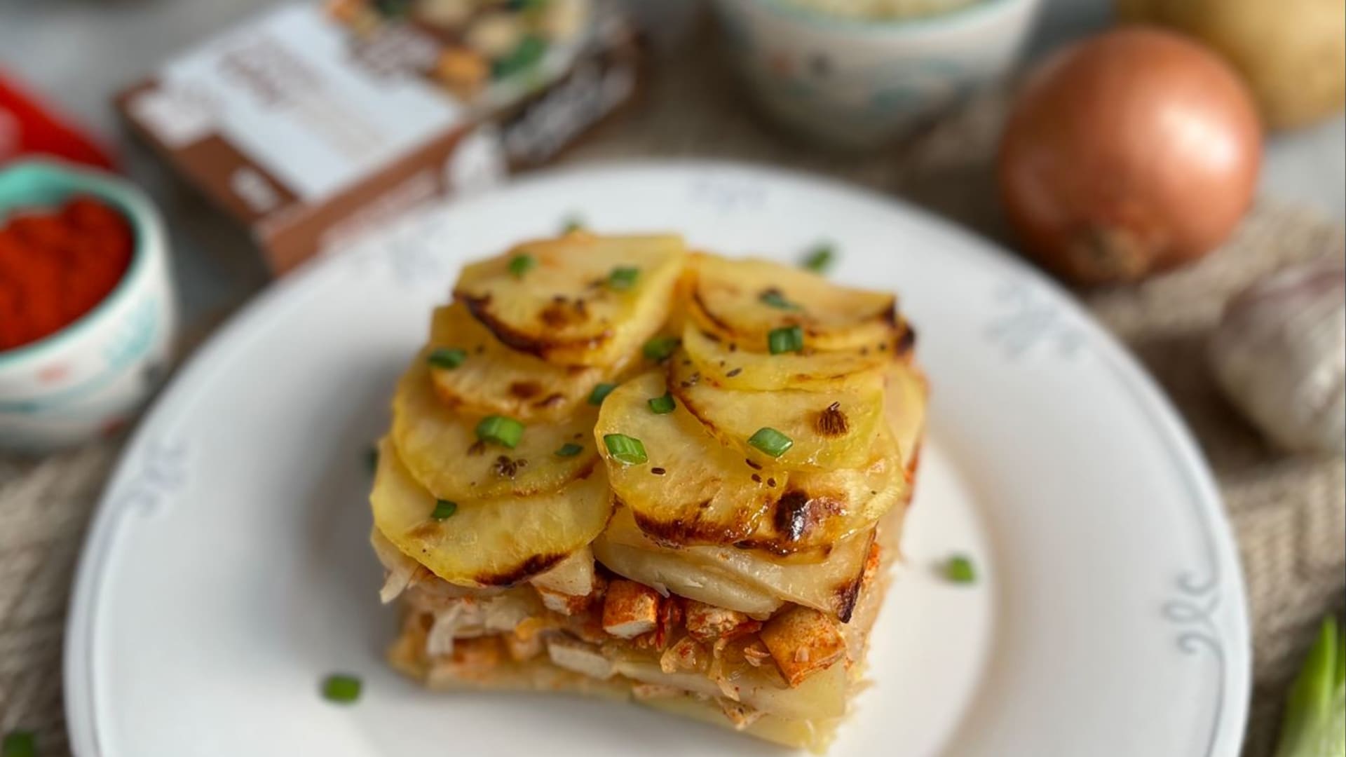 Zapečené brambory mají v naší kuchyni velkou tradici. Zatímco v Česku jsou oblíbené francouzské brambory s uzeným masem a vejci, na Slovensku jsou populární zapečené brambory s uzenou gazdovskou slaninou. Podobné chuti, ovšem s mnohem lepší výživovou hodnotou, dosáhnete, pokud místo uzeniny použijete kvalitní uzené tofu.