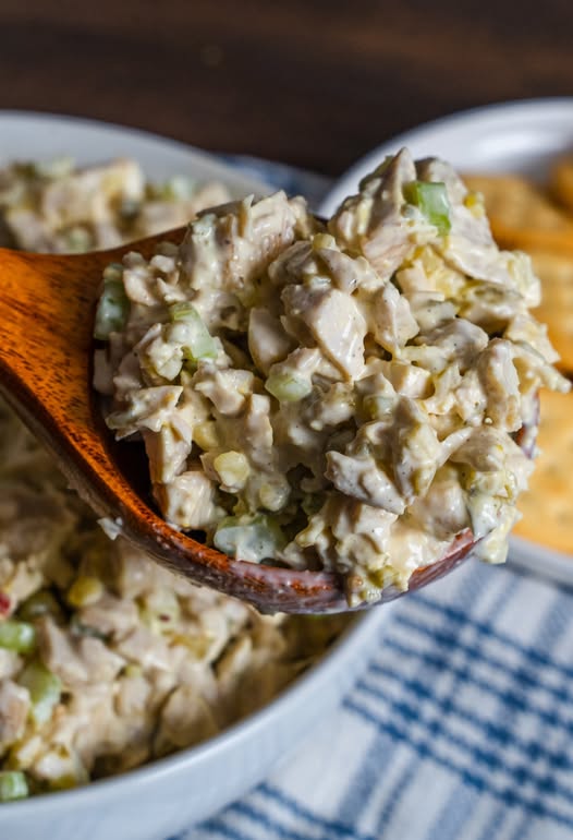 Instead of being heavy or overly creamy, it has a little tang and balance that keeps you coming back for another bite. It’s the kind of chicken salad grandmas knew how to make by memory. Simple ingredients, mixed together the way they’ve always been.