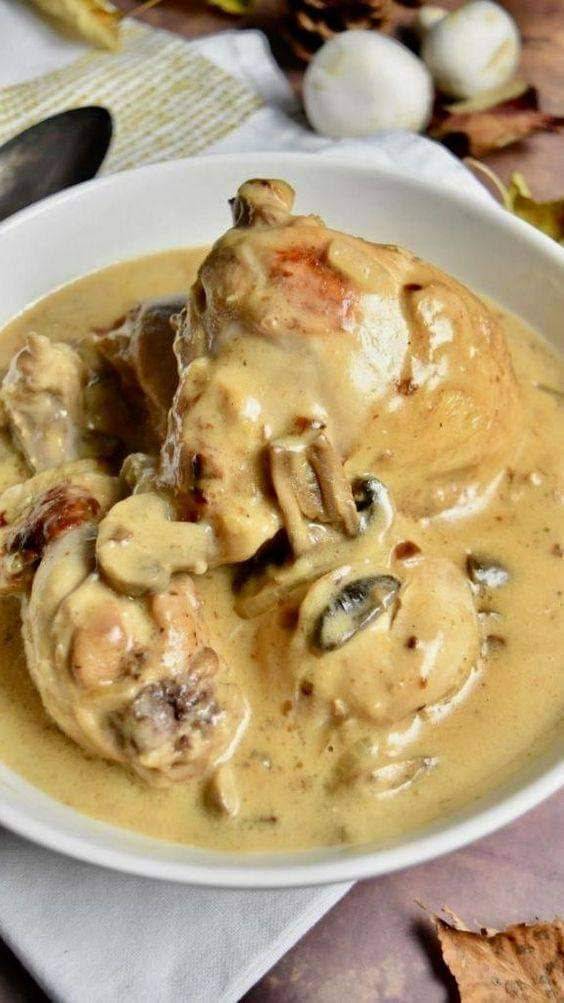 Émincés de Poulet s Hořčicí, Slaninou a Houbami – Francouzská Delikatesa pro Každý Den