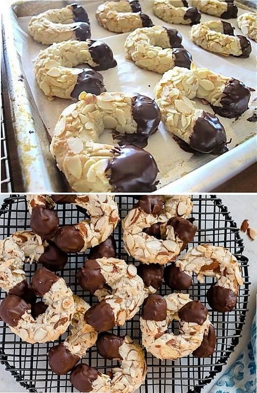 V menší misce si rozšlehejte vejce a potřete s ním rohlíčky. Vršek potom ozdobte mandlovými lupínky a všechny rohlíčky naskládejte na plech vyložený pečicím papírem. Nechte mezi nimi nějaké místo, protože se během pečení zvětší. Pečte je ve středně teplé troubě, kterou nebudou hotové a nádherně zlaté. Nakonec je nechte vychladnout, připravte si čokoládovou polevu a namočte do ní konce rohlíčků. Položte je na chladnější místo, aby čokoláda ztuhla a můžete si je vychutnat.