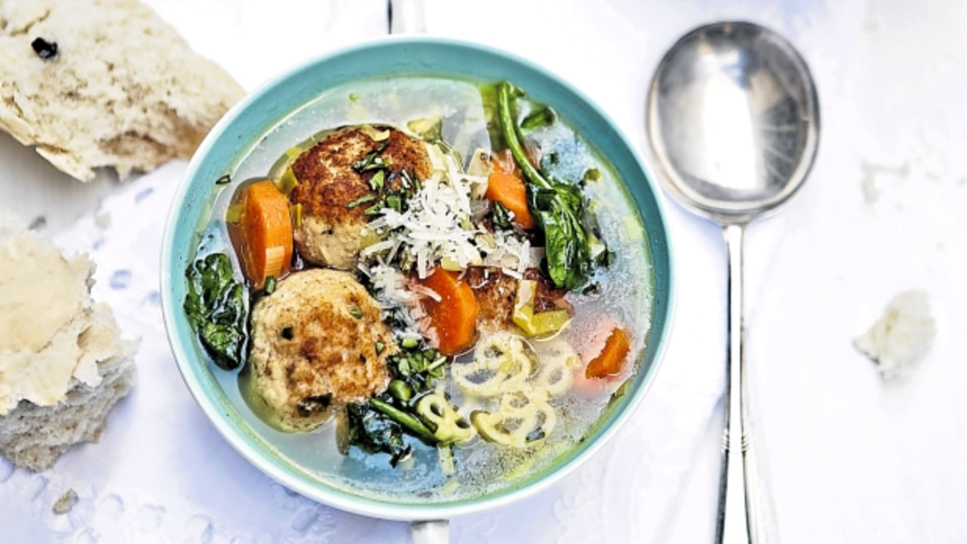 Jarní minestrone s kuřecími kuličkami