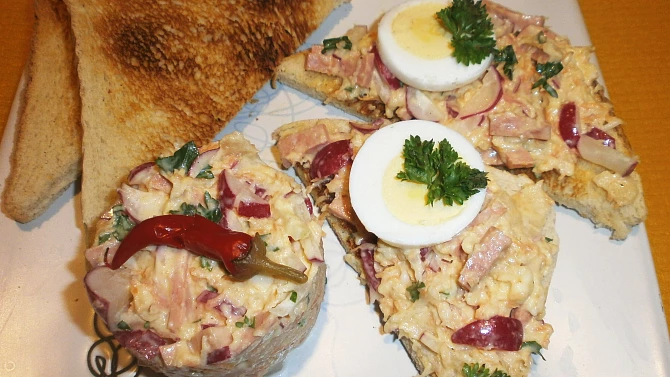 vařené vejce – alespoň jedno, nakrájené na plátky nebo čtvrtky.