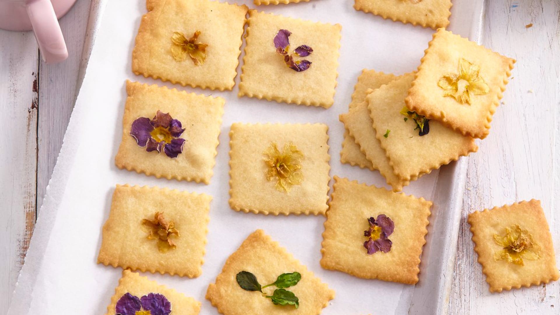 Skvěle chutnají, ale také nádherně vypadají! Křehké máslové sušenky zdobené jedlými květy jsou dokonalou sladkou tečkou ke kávě či čaji. S nadcházejícím jarem je to také ideální volba na první venkovní pikniky.