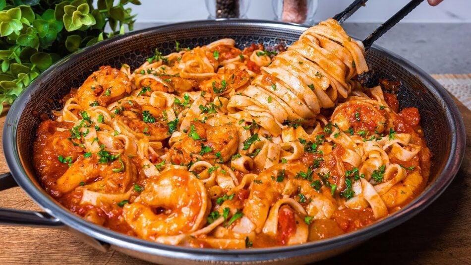 Hledáte inspiraci na netradiční obídek? V tom případě tu jste na správném místě! Dnes si společně přichystáme těstoviny na rajčatech se smaženými krevetami a vínu! Příprava této dobroty je velice snadná a časově nenáročná. Je to především díky našemu foto a video receptu.