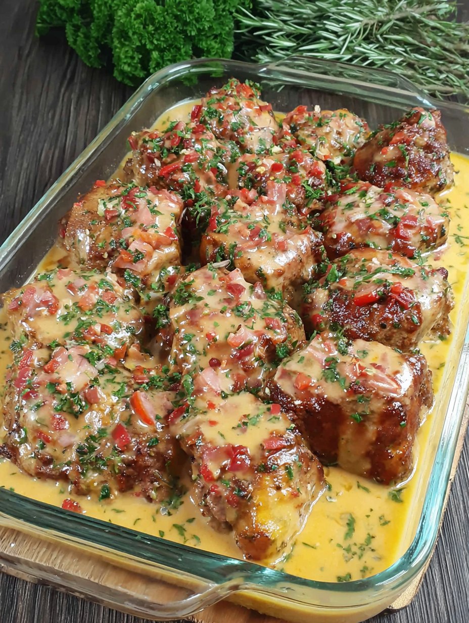 Ainekset: 🥩 500 g jauhelihaa (naudan, sian-tai sekoitus) 🧅 1 sipuli (hienonnettu) 🧄 2 valkosipulinkinttä (puristtettu valkosipururiuristimen läpi) 🥚 3 cananmunaa 🫑 1/2 punaista paprikaa (kuutioituna) ��� 150 g breakttua keltajuustoa (esIM. Gouda, Edam, Mozzarella) 🥛 150 ml 30 % kermaa 🌾 3 nebo rarkpudžáhuja