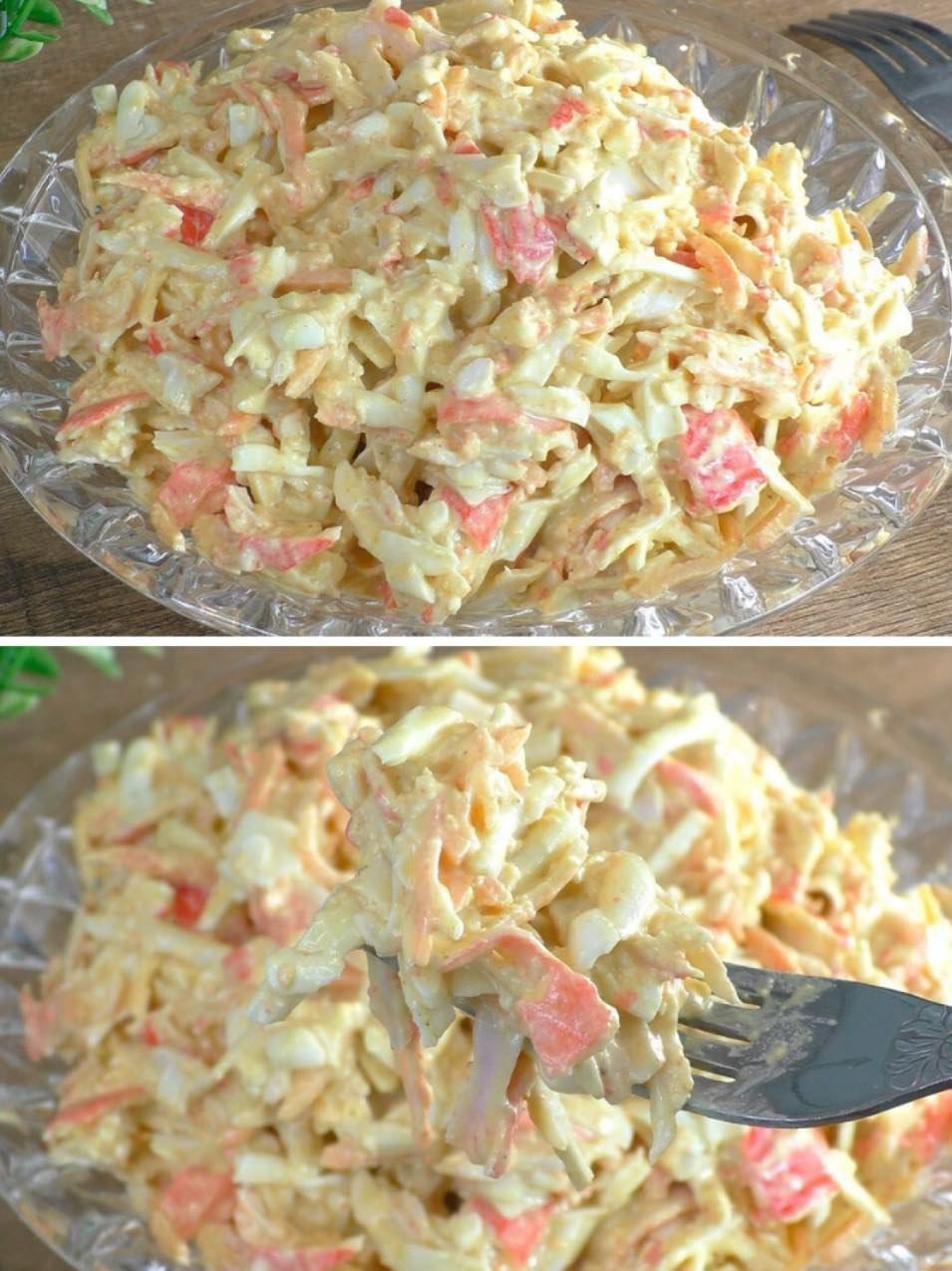 ✅Ingredience: mrkev v korejštině – 150 g. krabí tyčinky – 200 g. 2 vejce tavený sýr-1 ks majonéza – 2 lžíce. l. ✅Připravovat: