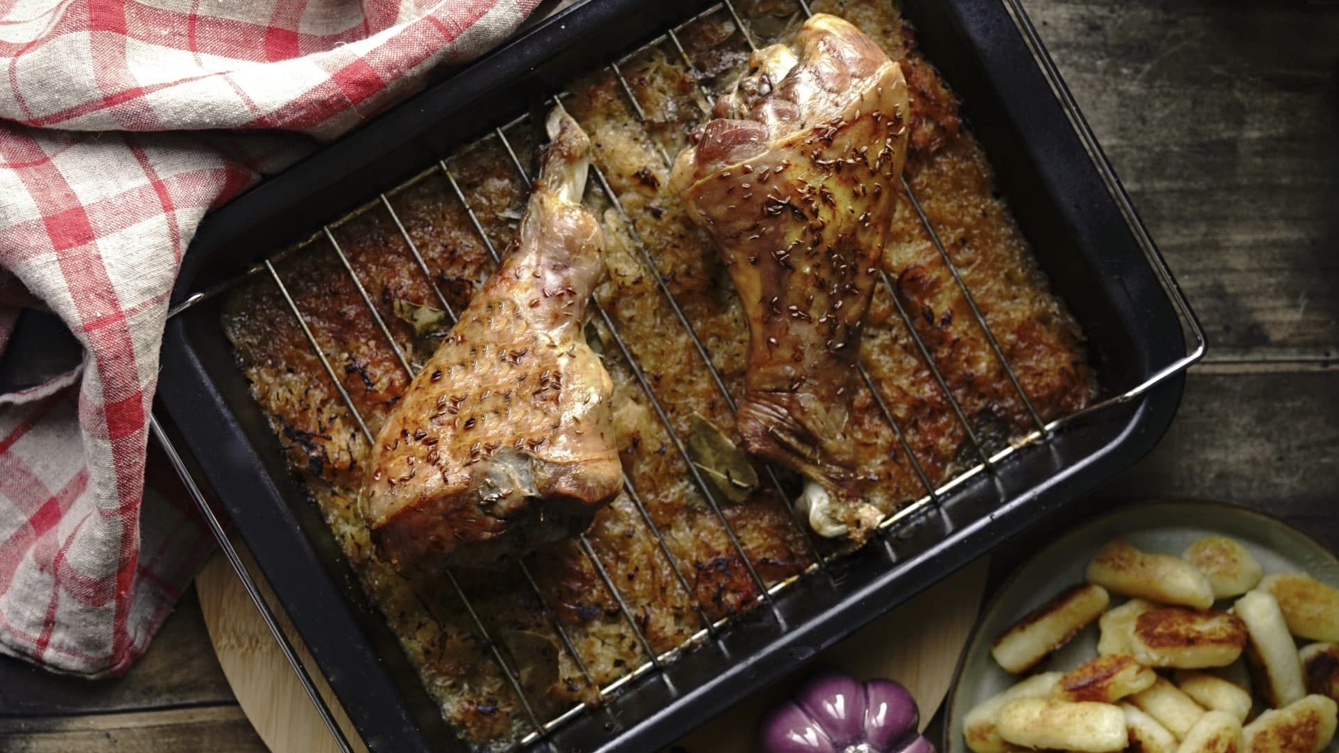 Sváteční pokrm, který se bez problému může zařadit do sekce tzv. comfort food. Krůtí stehna jsou perfektní volbou pro milovníky drůbeže a českých chutí – kysané zelí je totiž lokální klasika, kterou v této kombinaci rozhodně musíte vyzkoušet.