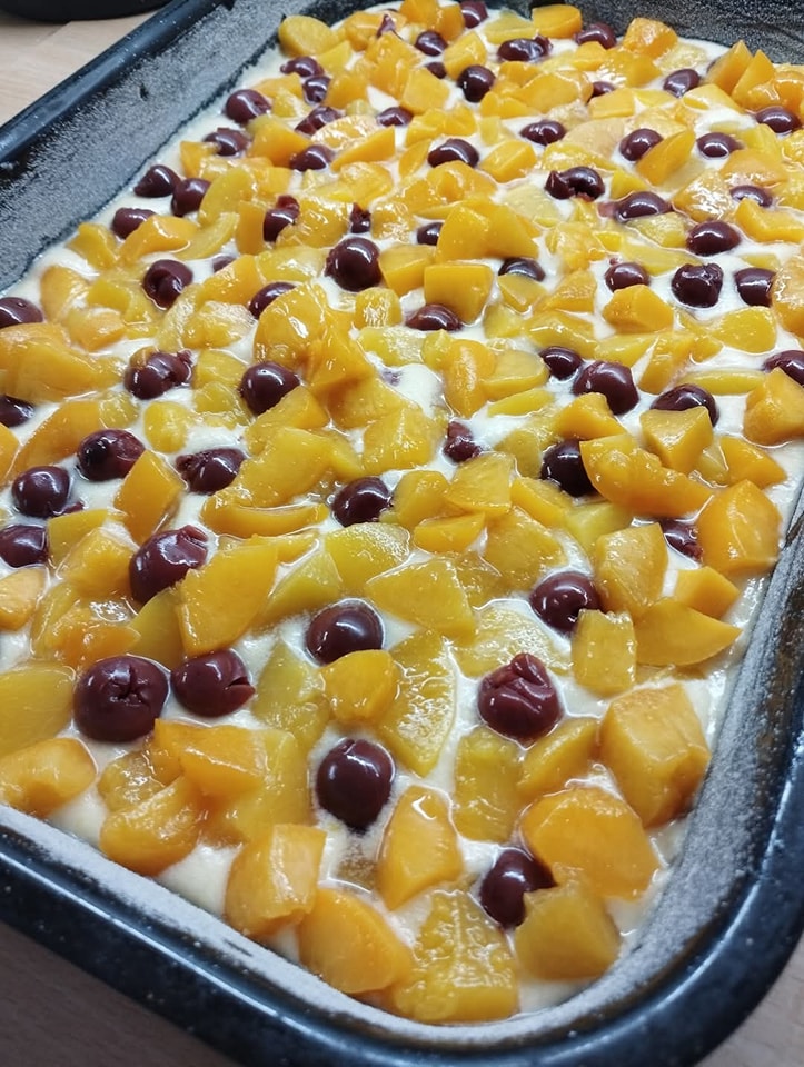 Kompotované broskve a višně (dle chuti)