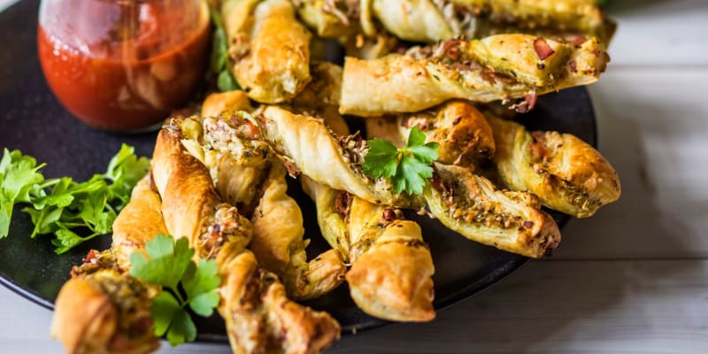 Večírky se nemusí nést jenom v duchu jednohubek a chlebíčků. Jednoduché spirálky z listového těsta zvládne i kuchař začátečník a připravit je můžete v mnoha variantách. Kombinace sýru a slaniny je ale klasika, kterou miluje úplně každý. Skvěle je pak doplní bazalkové pesto, případně jiné bylinky.