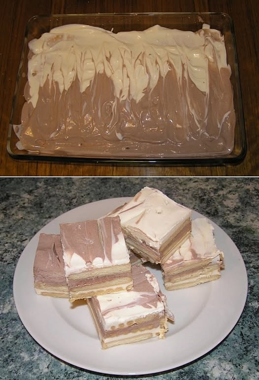 Pokud hledáte dezert, který je rychlý, nevyžaduje pečení a přitom chutná jako z cukrárny, pak je tento sušenkový zákusek se zakysanou smetanou a čokoládovým krémem přesně to pravé. Je ideální na oslavy, víkendové mlsání nebo jen tak ke kávě. A navíc – vypadá efektně a zvládne ho i úplný začátečník!