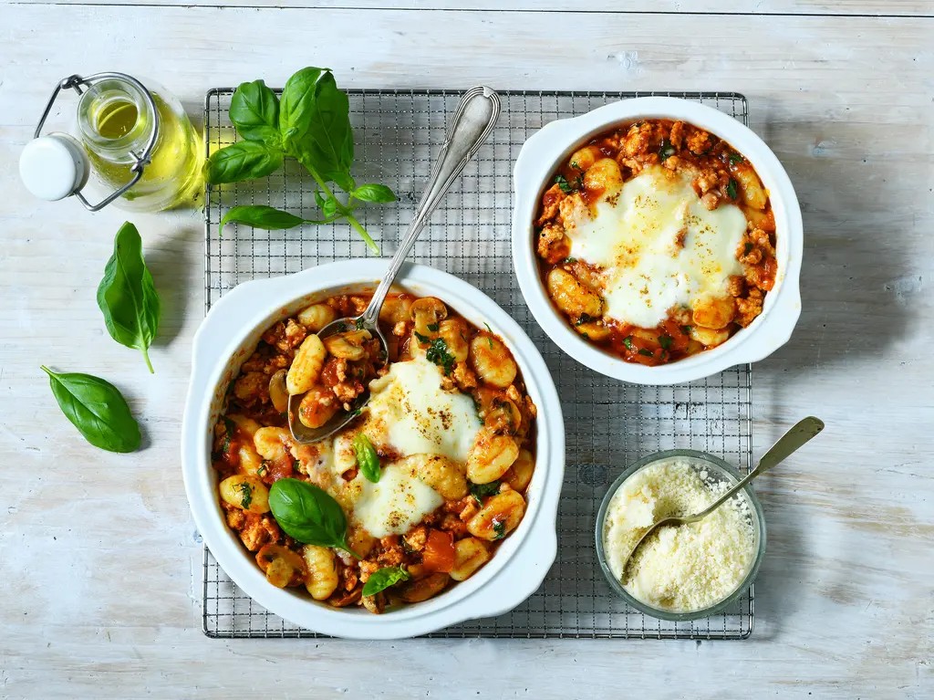 Zapečené gnocchi s kuřecím masem a rychlou omáčkou à la bolognese